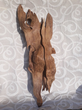Je ne m’attendais à rien d’extraordinaire dans ce périmètre restreint par mon rôle. Mais je l'ai vu... Issu d'un arbre déraciné par des vents violents. Il m'a offert ce magnifique bout de bois. Un coté homme, un côté femme, tous deux dressés vers le ciel.